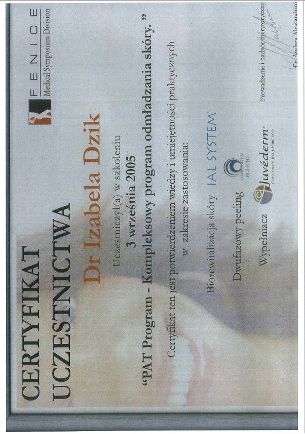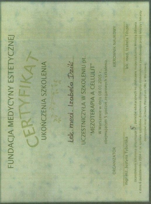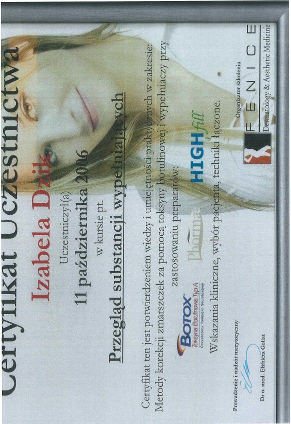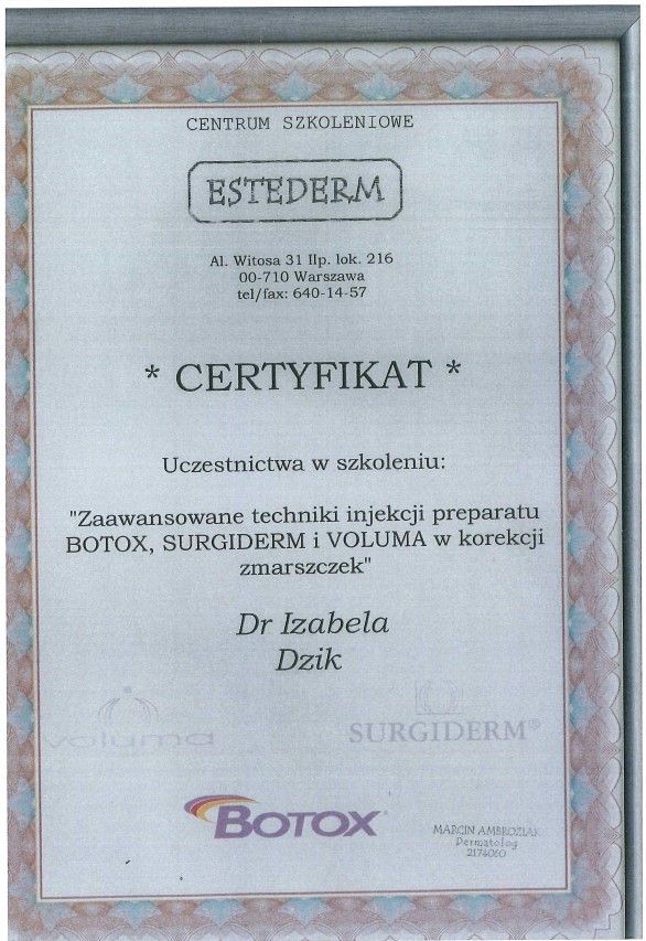 Jaki jest zakres porad oferowanych przez Izabela Aleksandra Dzik?Izabela Aleksandra Dzik to chirurg, lekarz wykonujący zabiegi medycyny estetycznej. Na podstawie swojego doświadczenia i wykształcenia Izabela Aleksandra Dzik oferuje usługi takie jak: Konsultacja chirurgiczna, Kwas hialuronowy - usta, Kwas hialuronowy - bruzdy nosowo- wargowe, linie marionetki, zmarszczki na twarzy, Kwas hialuronowy - wolumertia, Kwas polimlekowy - Juvelook, linerase, sculptra, nici liftingujące, Toksyna botulinowa - broda brukowana, zmarszczki królicze, palacza, Toksyna botulinowa nadpotliwość 1amp, mezoterapia igłowa, Osocze bogatopłytkowe.