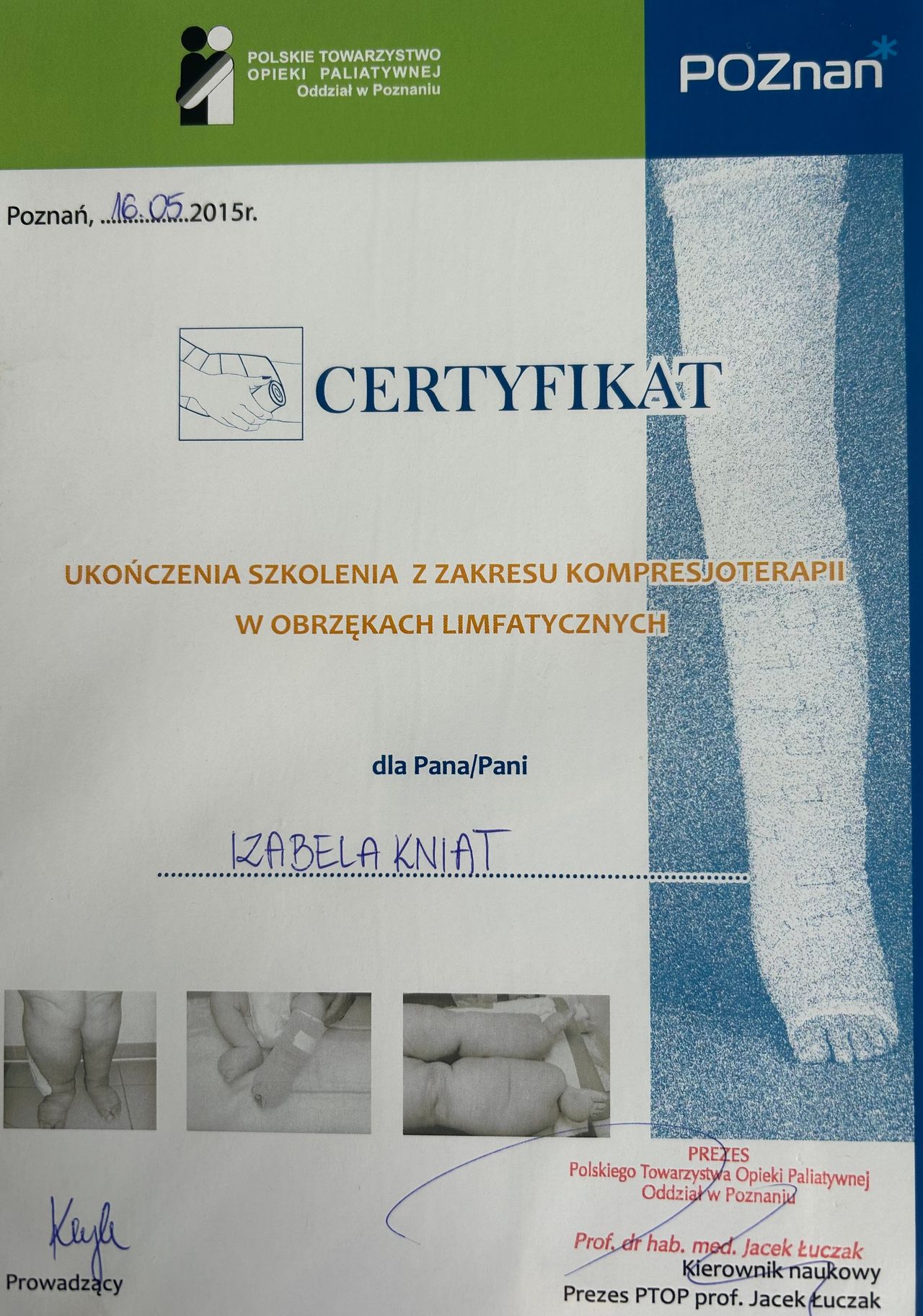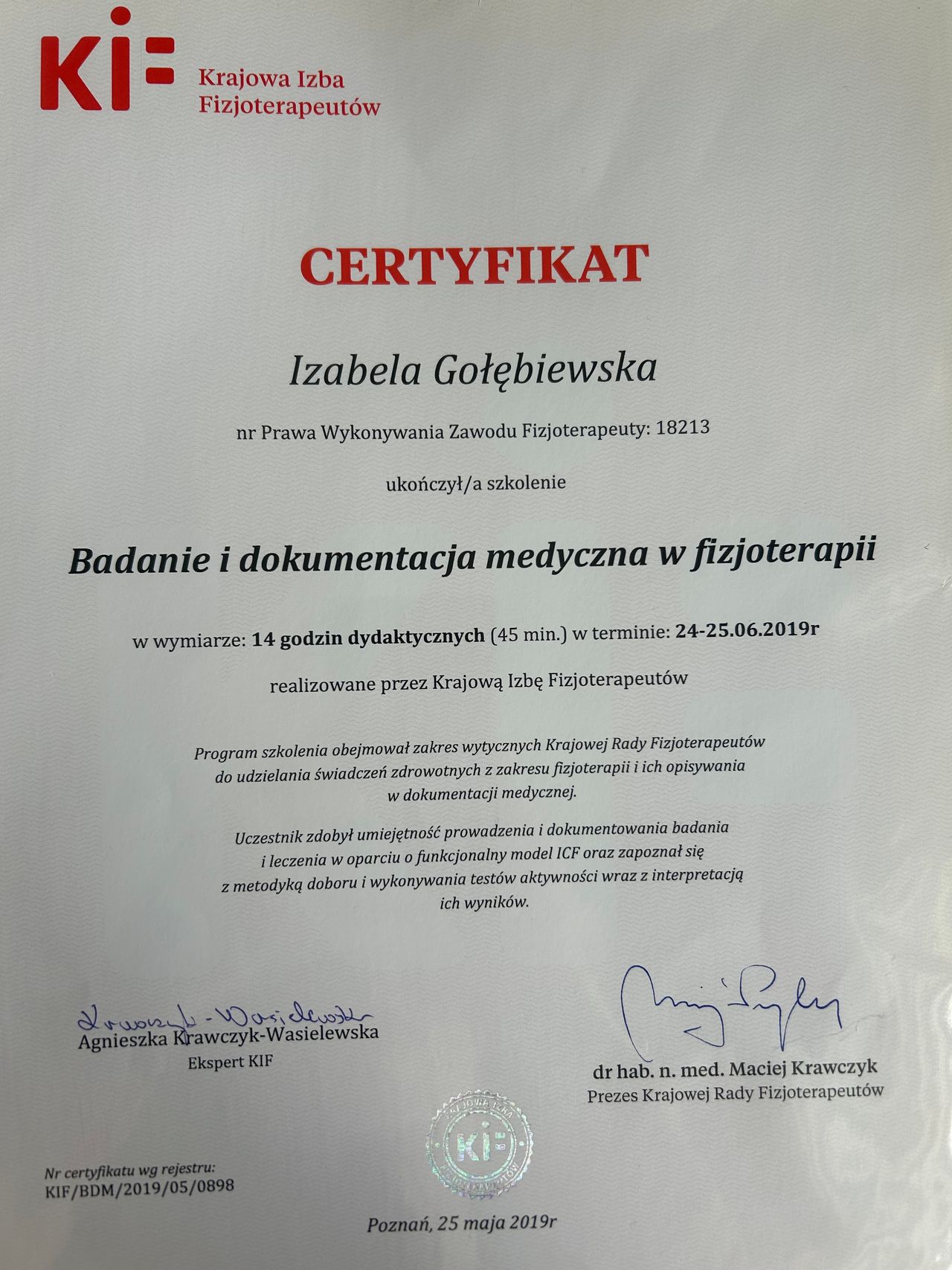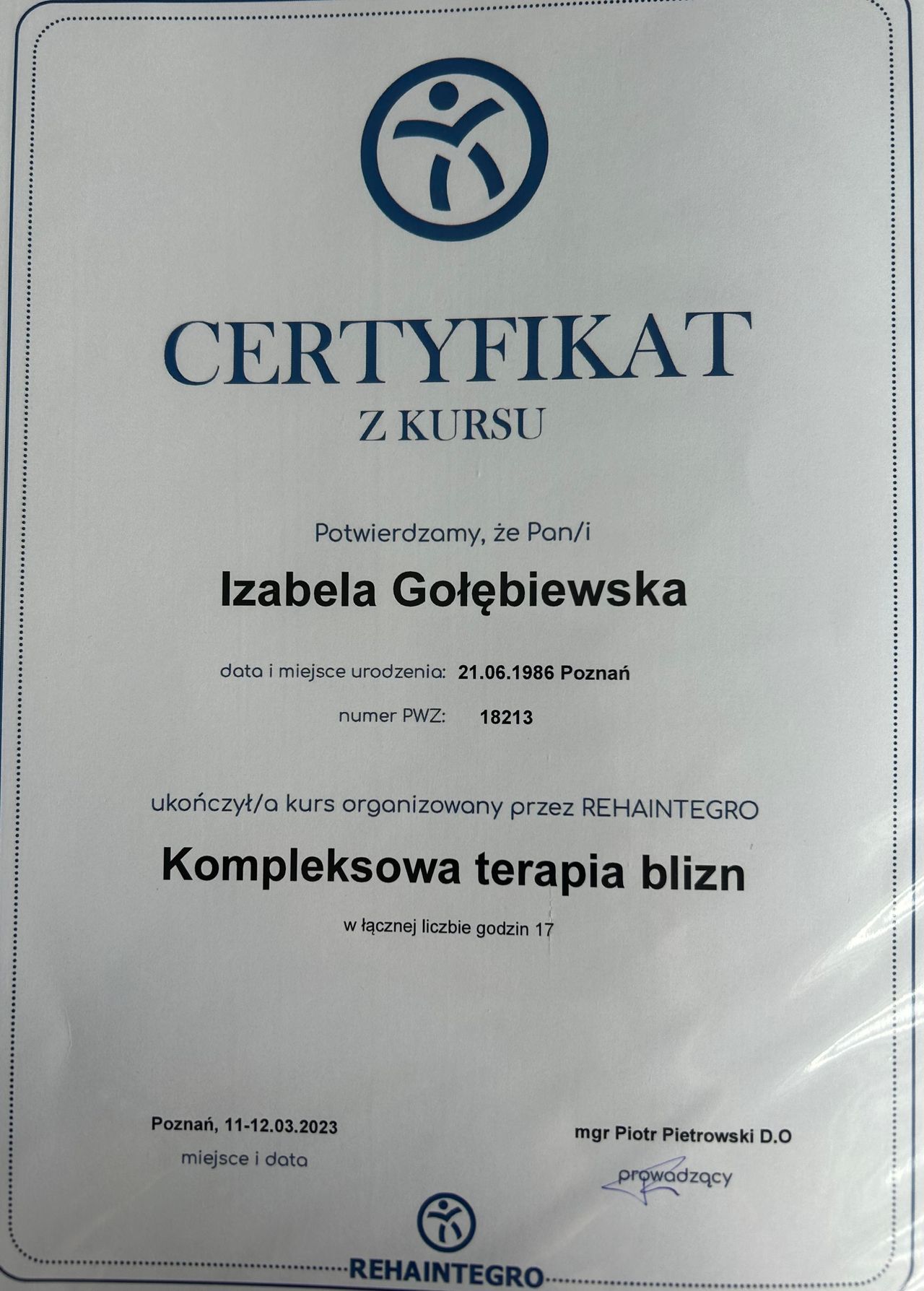 Jestem absolwentką Akademii Wychowania Fizycznego w Poznaniu, gdzie obroniłam tytuł magistra fizjoterapii.