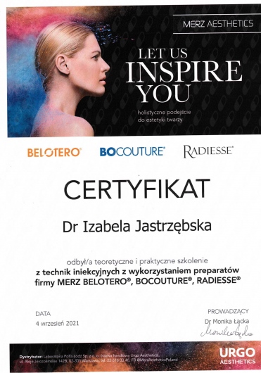 Certyfikowany lekarz medycyny estetycznej, absolwentka Uniwersytetu Medycznego w Lublinie.