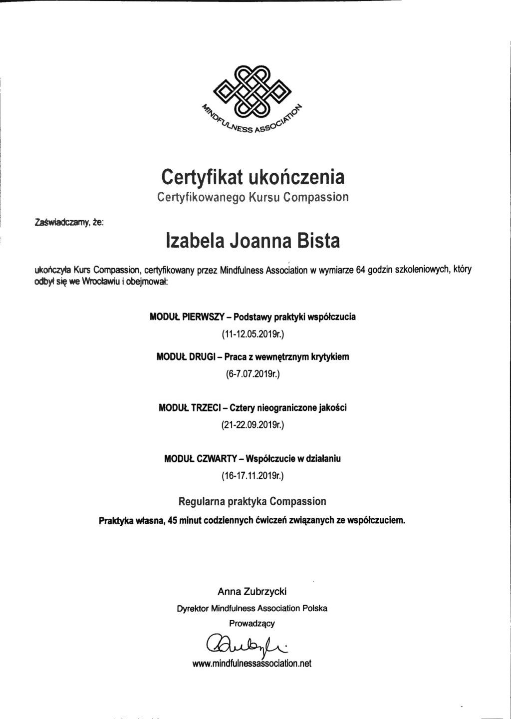 Pani Izabela to osoba łącząca wysoki profesjonalizm z empatią i zaangażowaniem. Kilka pierwszych spotkań poświęca na gruntowne poznanie osoby i jej doświadczeń.