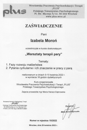 moja terapia trwała 9 miesięcy. po każdej wizycie czułam się jak „nowy” człowiek. Pani Izabela świetnie podeszła do problemów, z którymi się zmagałam i bardzo dokładnie podchodziłyśmy do każdego tematu, by wyciągnąć jak najwięcej szczegółów nad którymi w następnych etapach mocno pracowałyśmy. po terapii zdecydowanie mam bardziej przejrzyste myśli i inaczej podchodzę do siebie i sytuacji, które mnie spotykają. jestem bardzo zadowolona, że trafiłam do Pani Izabeli. polecam każdemu tak profesjonalnie działającego psychoterapeutę!