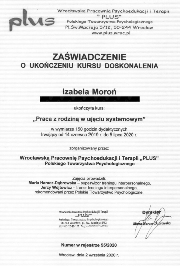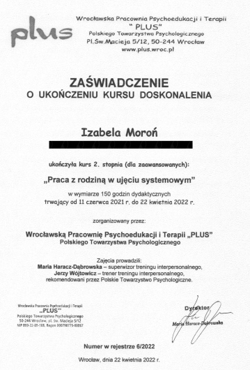 Pani Izabela to osoba niezwykle empatyczna i cierpliwa. Z zaangażowaniem słucha, notuje i przywołuje z pamięci szczegóły dotyczące omawianych podczas sesji problemów. Na spotkaniach czułam, że Pani Izabela jest skupiona na mnie i mojej historii. Nigdy nie poczułam się oceniona, czułam za to zrozumienie i wsparcie. Po każdym spotkaniu z Panią Izabelą wracałam spokojniejsza, a moje podejście do życiowych trudności po kilku wspólnych miesiącach zmieniło się. Teraz mam świadomość siły płynącej ze swojego wnętrza i dzięki terapii u Pani Izabeli wiem, że poradzę sobie w dalszej życiowej wędrówce. Szczerze polecam Panią Izabelę jako profesjonalnego psychoterapeutę a także ciepłą i życzliwą osobę.