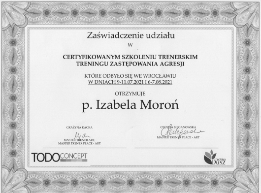 Jednak Pani Izabela nie wyśmiała mnie, lecz wysłuchała i pomogła znaleźć odpowiednią drogę do poradzenia sobie z problemami. Pierwszy raz w życiu poczułem się, że ktoś mnie poważnie słucha i potrafi odpowiednio ze mną rozmawiać.