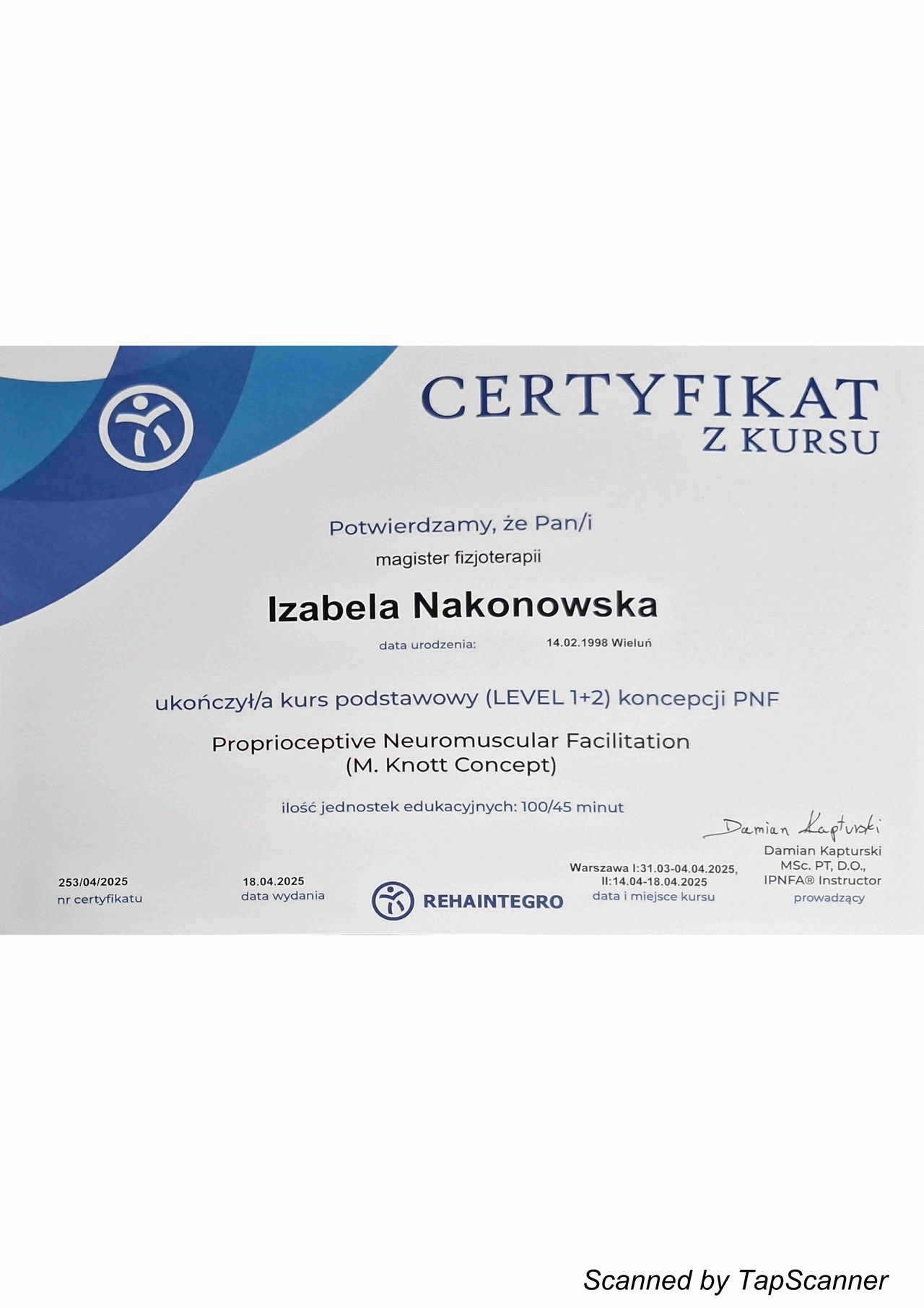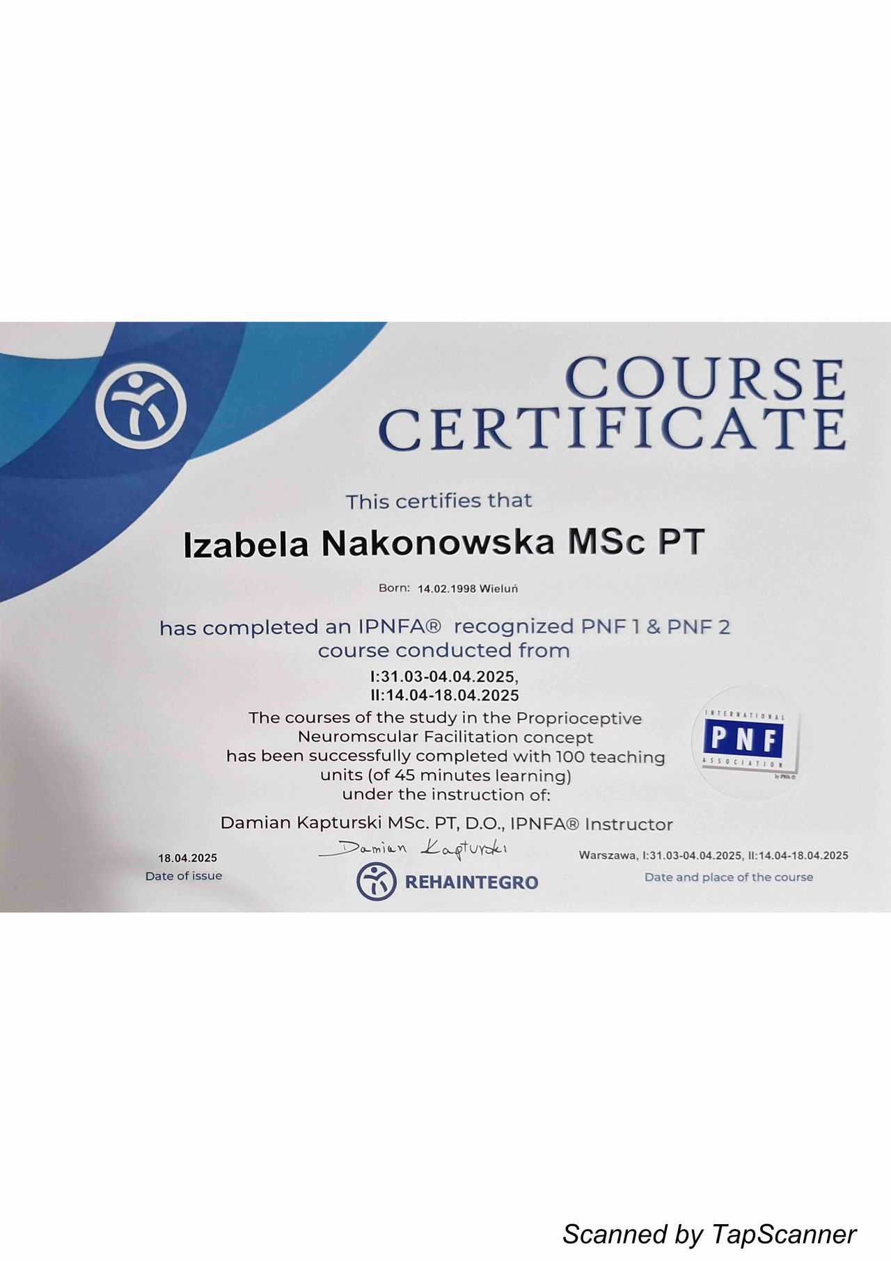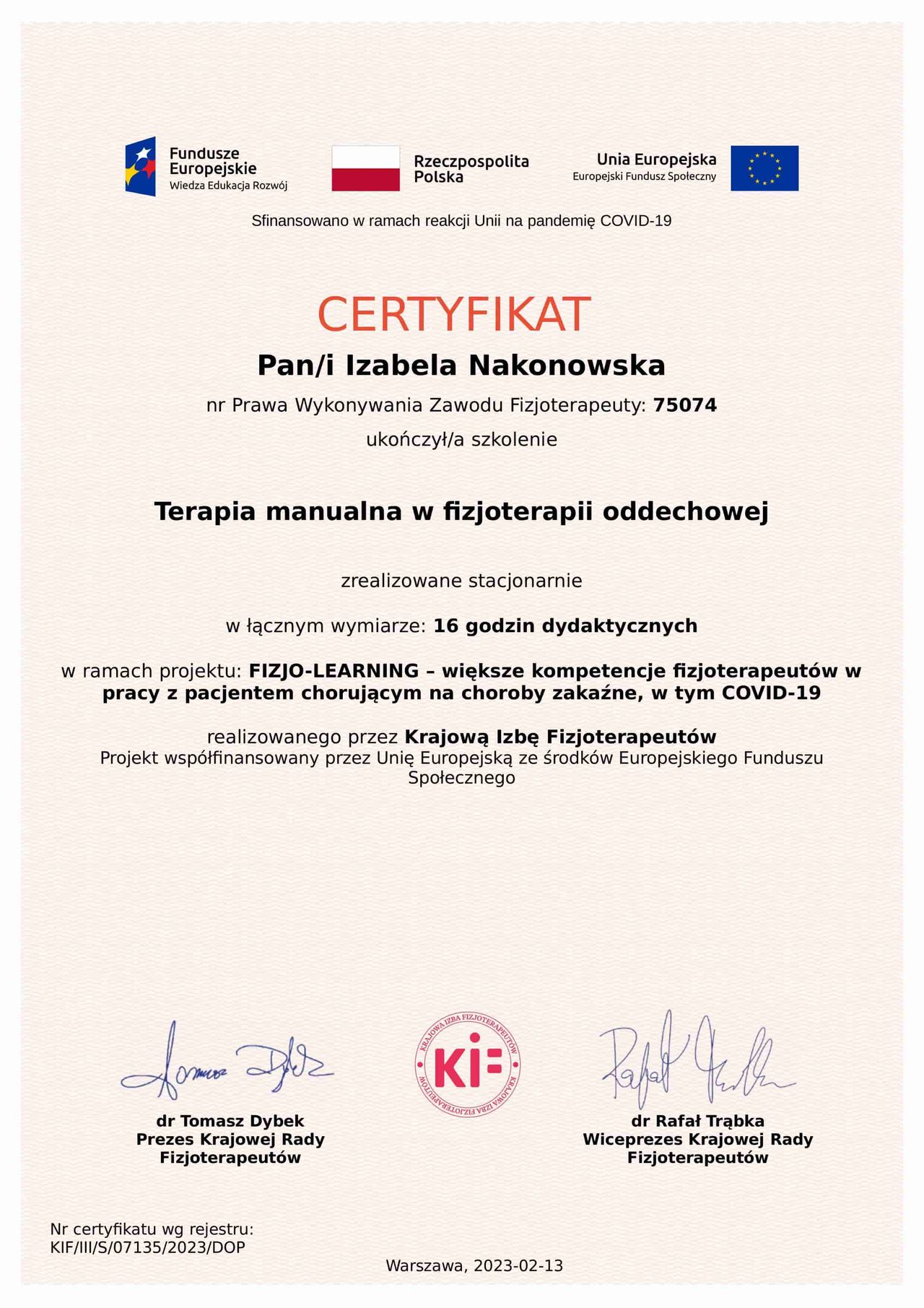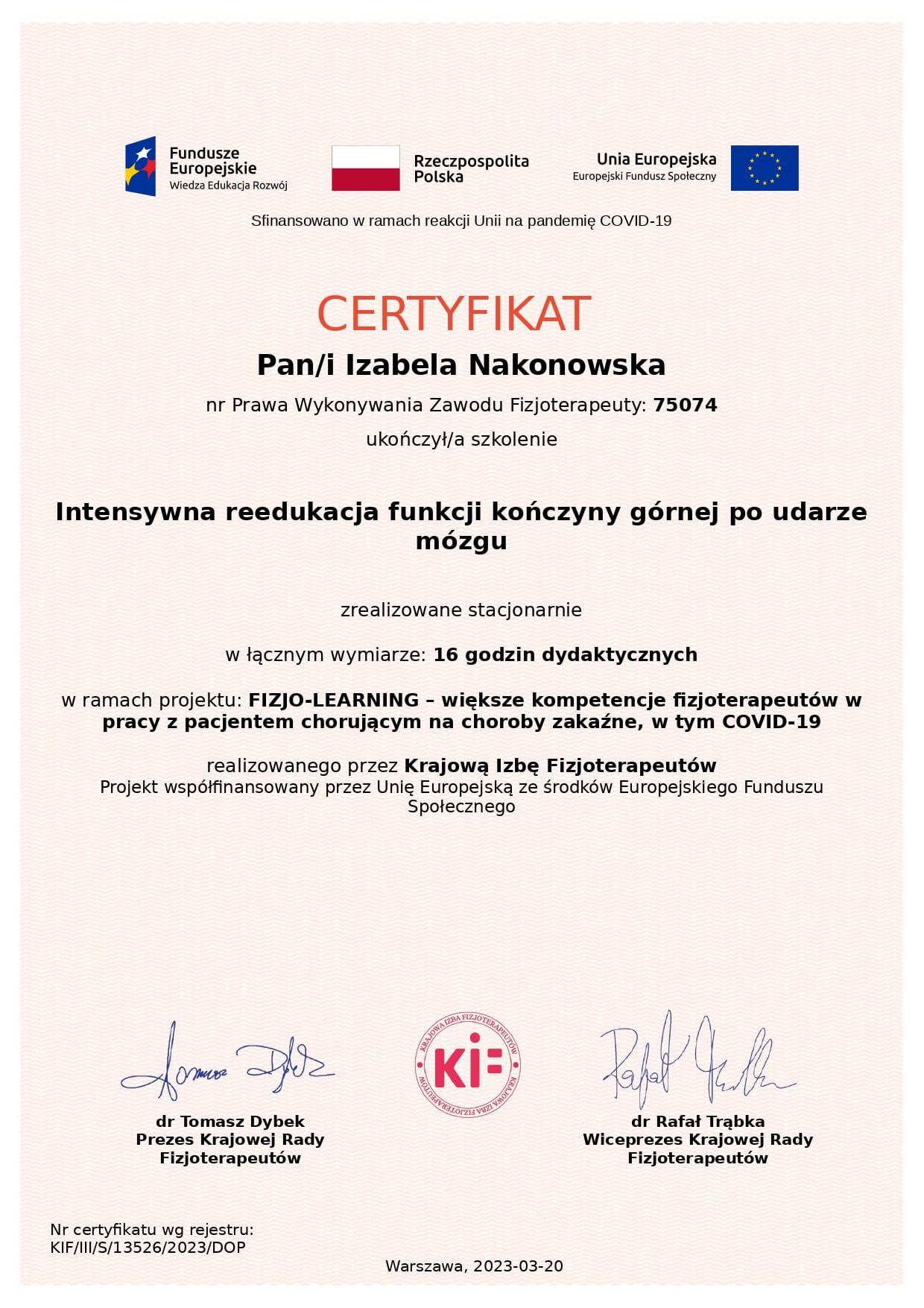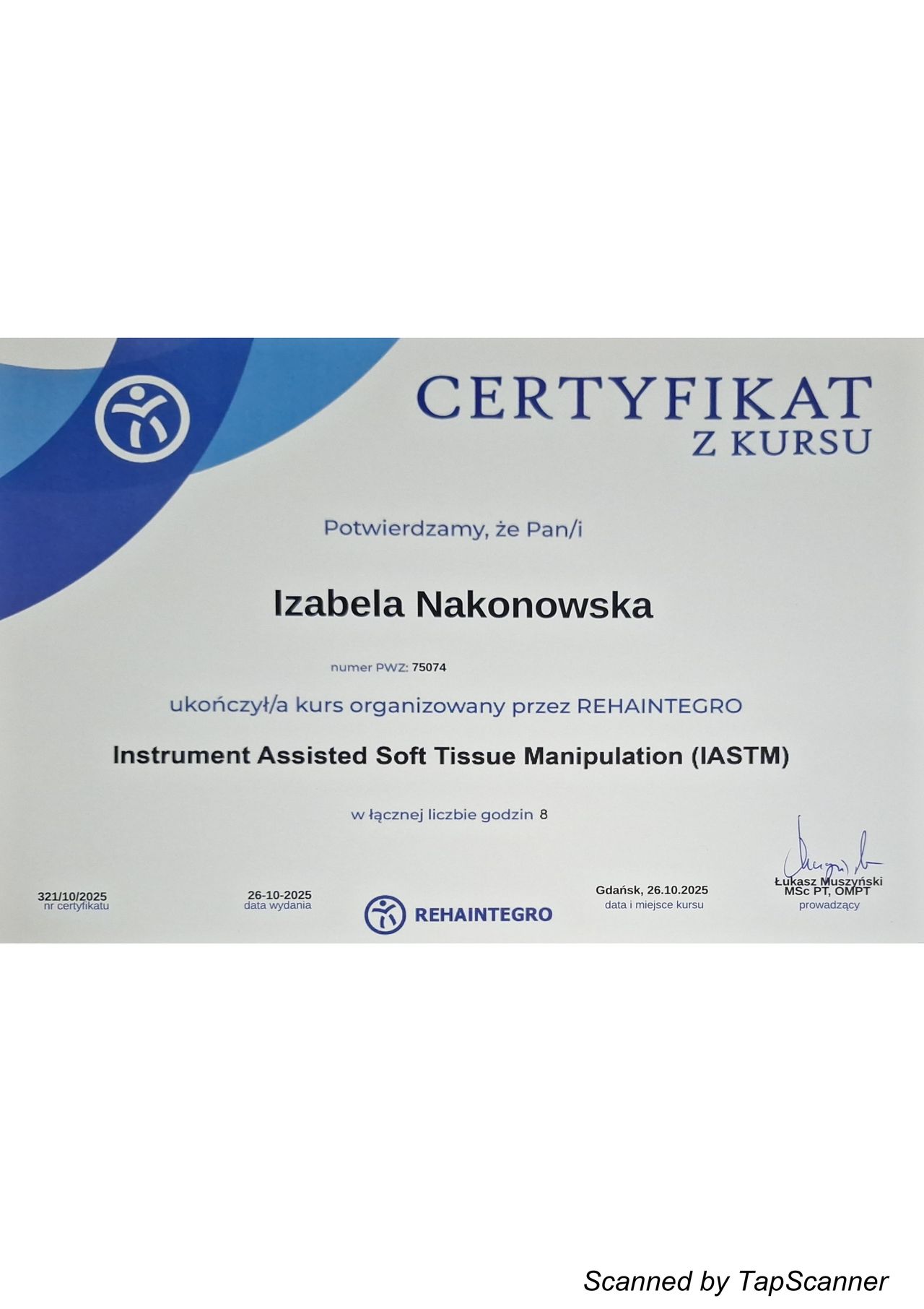 Regularnie uczestniczę w specjalistycznych szkoleniach i kursach z zakresu nowoczesnej fizjoterapii, aby zapewnić pacjentom skuteczną, bezpieczną i opartą na aktualnej wiedzy terapii. W pracy kieruję się empatią, zaangażowaniem oraz profesjonalnym podejściem, ponieważ najważniejsza jest dla mnie poprawa jakosci życia i zdrowia moich pacjentów.