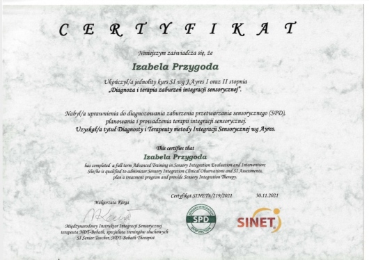 -Diagnoza i Terapia Integracji Sensorycznej I i II stopień