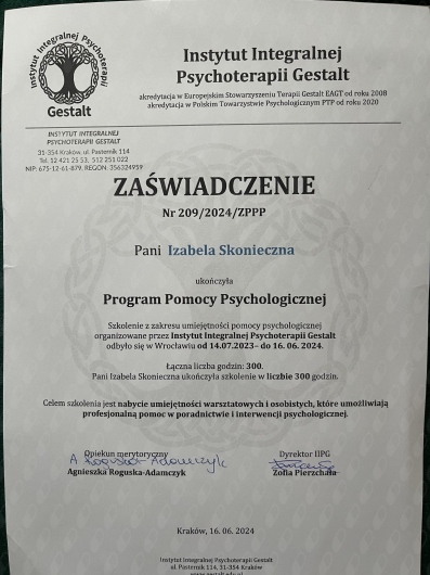 • Psychoterapia Izabela Skonieczna Tarnogaj/Gaj • Konsultacja psychologiczna •