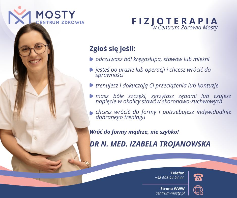 W terapii łączę fizjoterapię ortopedyczną, trening medyczny oraz elementy terapii manualnej i pracy z tkankami miękkimi. Zawsze tłumaczę, co robimy i dlaczego, a proces leczenia dostosowuję indywidualnie do możliwości i celów pacjenta.