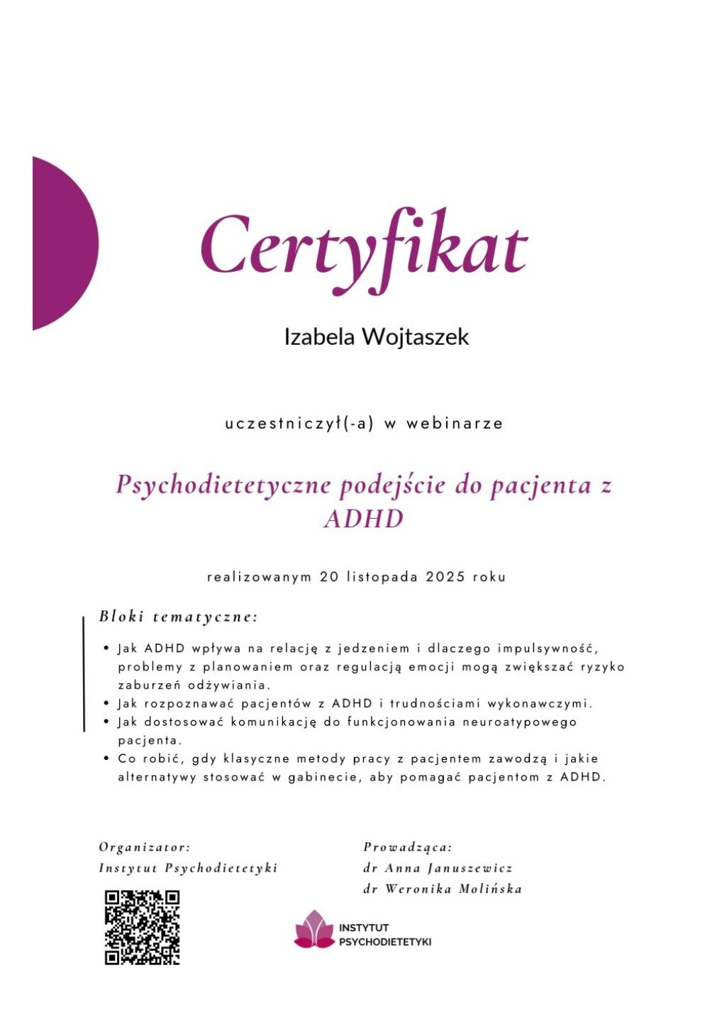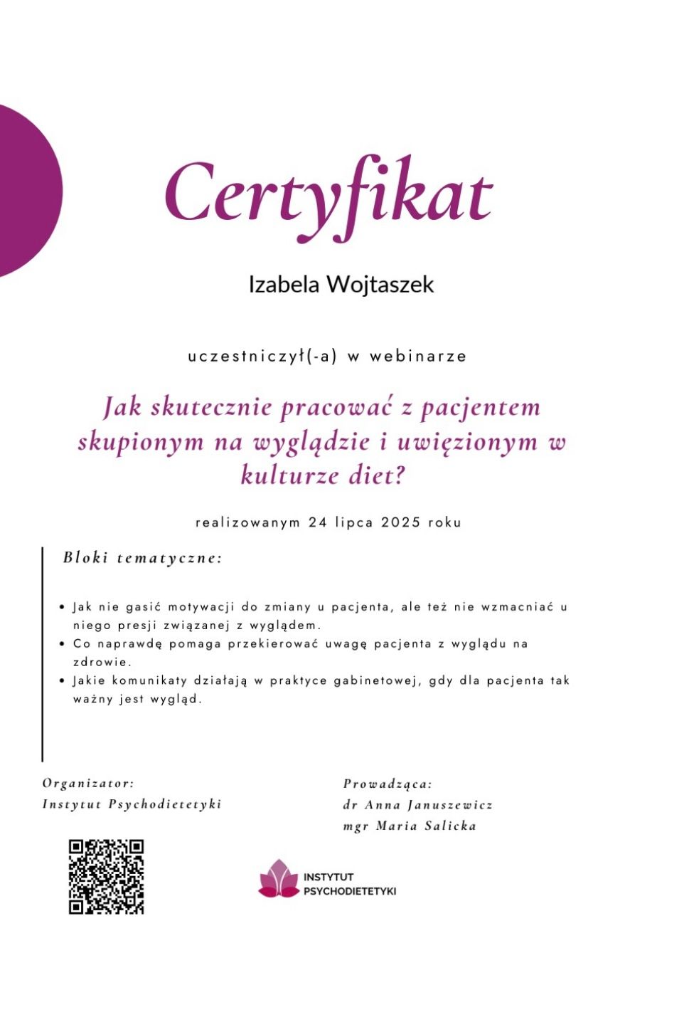 Czy Izabela Wojtaszek przyjmuje online, bez konieczności pojawiania się w placówce?Nie, w tym momencie Izabela Wojtaszek nie oferuje konsultacji online.