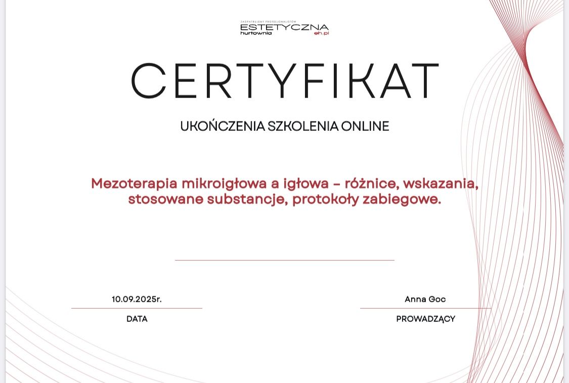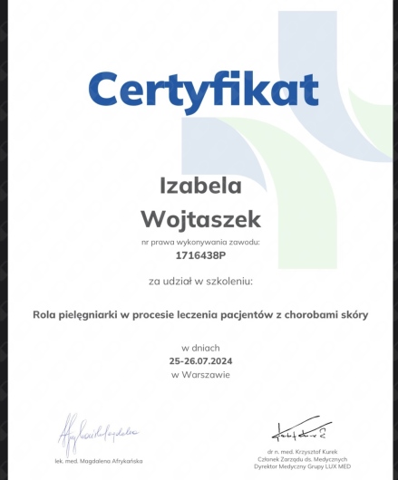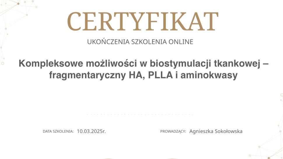 Education: I graduated from Collegium Medicum UJ in Kraków and continue to expand my expertise by collaborating with dermatologists and surgeons.