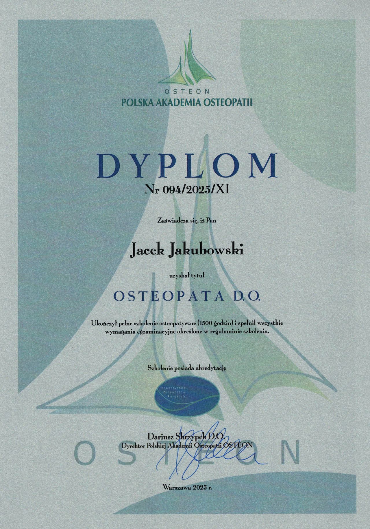 Jaki jest zakres porad oferowanych przez Jacek Jakubowski?Jacek Jakubowski to osteopata, fizjoterapeuta. Na podstawie swojego doświadczenia i wykształcenia Jacek Jakubowski oferuje usługi takie jak: fizjoterapia, masaż tkanek głębokich, kinezyterapia, rehabilitacja, badanie układu ruchu, terapia przeciwbólowa, terapia mięśniowo-powięziowa, Terapia manualna, rehabilitacja sportowców, rehabilitacja ortopedyczna.