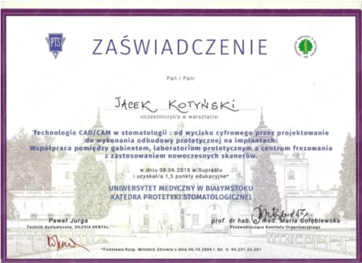 Jaki jest zakres porad oferowanych przez Jacek Kotyński?Jacek Kotyński to protetyk stomatologiczny. Na podstawie swojego doświadczenia i wykształcenia Jacek Kotyński oferuje usługi takie jak: konsultacja protetyczna.