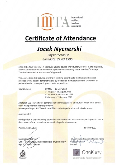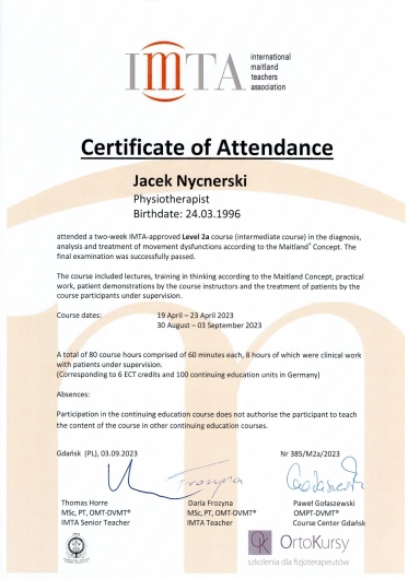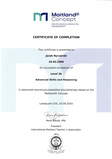 Jestem certyfikowanym terapeutą manualnym wg. Koncepcji Maitland, respektowanej i