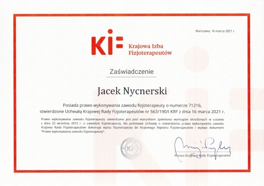 Wizyta odbyła się punktualnie. Czas który był dla mnie zarezerwowany został wykorzystany w 100%. W przyszłości, gdy będę potrzebować fizjoterapeuty mój wybór to tylko i wyłącznie Pan Jacek Nycnerski. Polecam serdecznie.