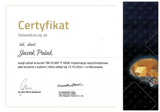 Gdy decydowałem się na poprawę uśmiechu, trafiłem do doktora Jacka Polaka, który od początku zaimponował mi profesjonalizmem. Dzięki nowoczesnej wizualizacji miałem okazję zobaczyć przyszły wynik jeszcze przed rozpoczęciem leczenia. Doktor Jacek dbał o każdy detal, dzięki czemu leczenie przebiegło płynnie i zgodnie z planem. Efekt końcowy przewyższył moje oczekiwania. Teraz noszę uśmiech pełen dumy i pewności siebie. Gorąco polecam tego specjalistę!