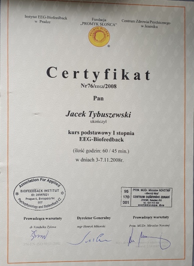 Jaki jest zakres porad oferowanych przez Jacek Tybuszewski?Jacek Tybuszewski to psycholog. Na podstawie swojego doświadczenia i wykształcenia Jacek Tybuszewski oferuje usługi takie jak: Konsultacja psychologiczna, konsultacja psychologiczna (pierwsza wizyta), EEG - Biofeedback + komputerowe treningi mózgu.