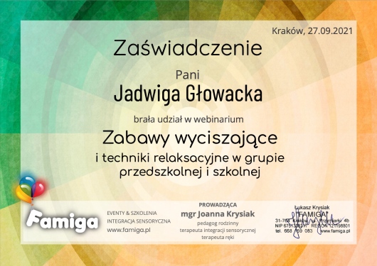 Prowadzę terapię z częstotliwością spotkań raz w tygodniu.