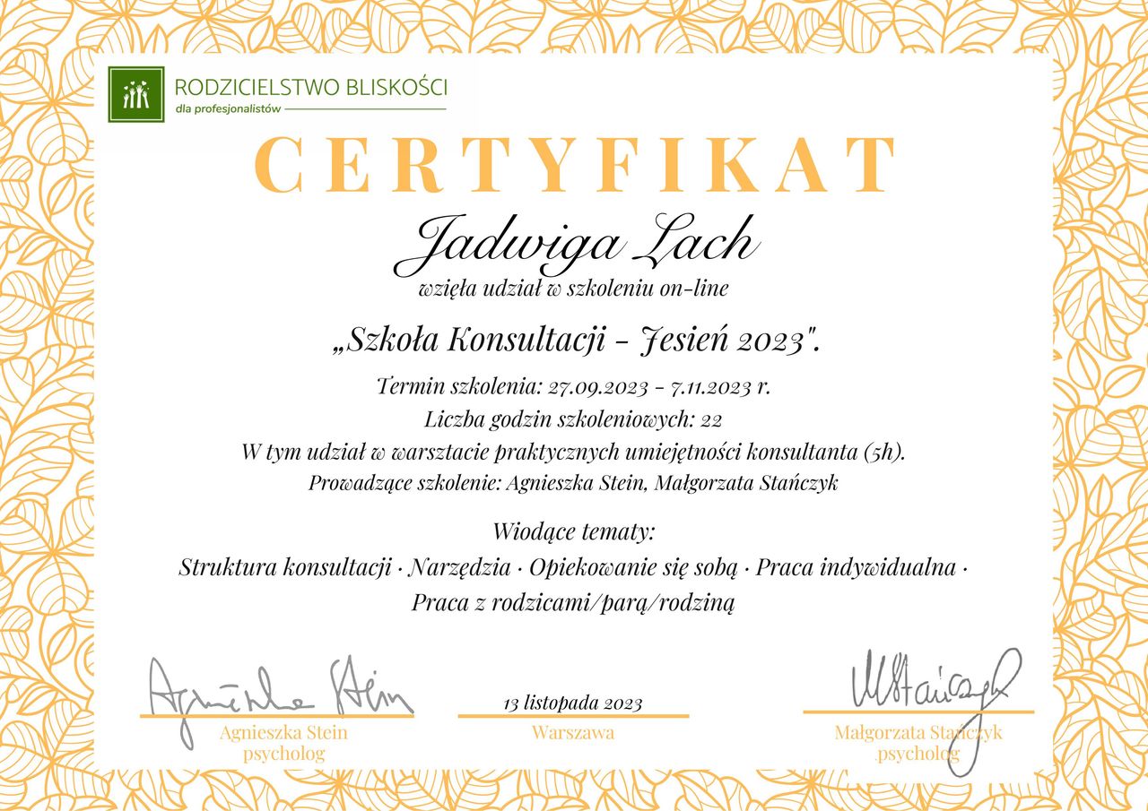 Razem z żoną jesteśmy pod wrażeniem podejścia i zaangażowania Pani Jadwigi. Dużo merytorycznej wiedzy , przekazanej w empatyczny sposób. Pozdrawiamy i polecamy