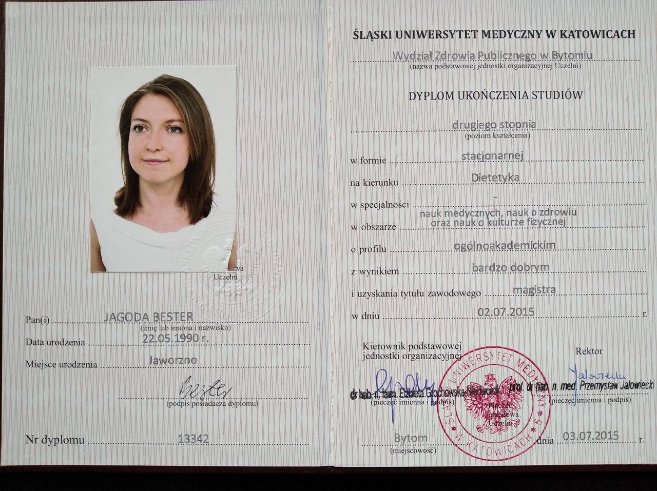 Jestem psychologiem i dietetykiem klinicznym oraz psychoterapeutą w nurcie integracyjnym w trakcie całościowego szkolenia. Kurs jest atestowany przez Sekcję Naukową Psychoterapii Polskiego Towarzystwa Psychiatrycznego oraz akredytowany przez Sekcję Psychoterapii Polskiego Towarzystwa Psychologicznego. Swoją pracę poddaję regularnej superwizji.