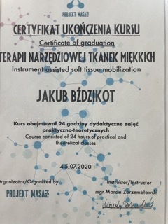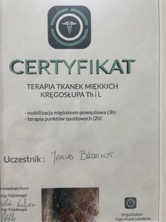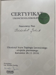 Nazywam się Jakub Bździkot. Jestem magistrem fizjoterapii oraz technikiem masażysta z 7 letnim doświadczeniem. Praktykę zawodwą zdobywałem już na studiach pracując w przychodniach rehabilitacyjnych oraz na licznych kursach. Zajmuje się głównie rehabilitacja ortopedyczna, mobilizacja blizn oraz zespołami przeciążeniowymi. W swojej pracy wykorzystuje terapię manualną, masaż tkanek głębokich, elementy pionoterapii wraz z suchym igłowaniem oraz akupunkturę.