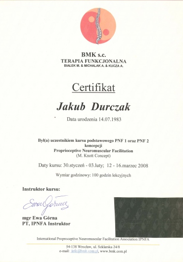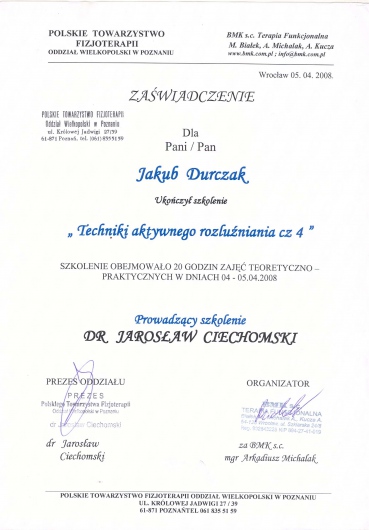 Jaki jest zakres porad oferowanych przez Jakub Durczak?Jakub Durczak to fizjoterapeuta. Na podstawie swojego doświadczenia i wykształcenia Jakub Durczak oferuje usługi takie jak: osteopatia, terapia kobiet w ciąży, terapia wad postawy, terapia mięśniowo-powięziowa, terapia przeciwbólowa, Terapia tkanek miękkich, konsultacja fizjoterapeutyczna, Stan ostry - Fizjoterapia, Fizjoterapia pourazowa, kinesiotaping.