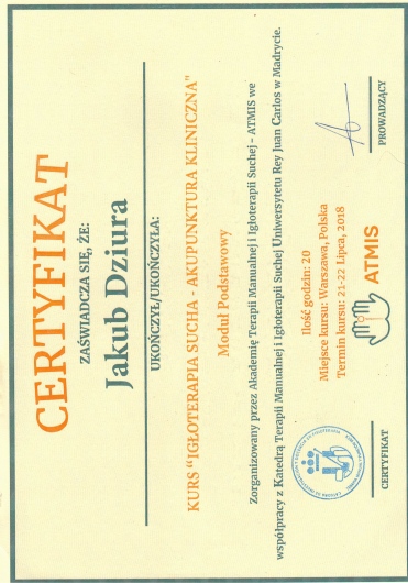 2018 – Igłoterapia sucha – akupunktura kliniczna, moduł podstawowy