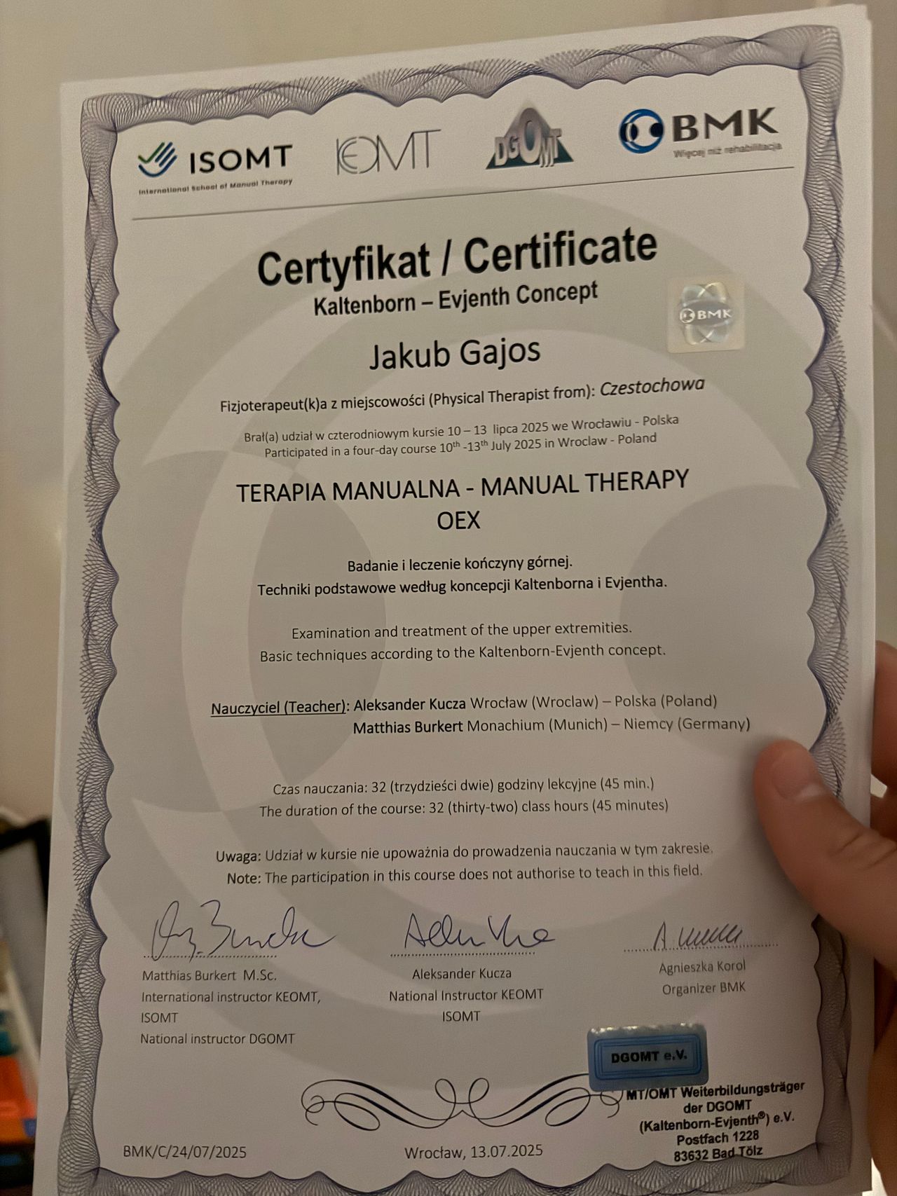 Po kilku wizytach u Pana Jakuba udało nam się zwiększyć mobilność ręki. Profesjonalne podejście, wszytsko jasne wyjaśnione, polecam