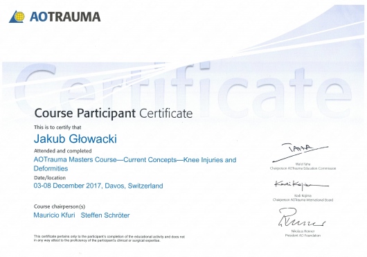 Jest instruktorem leczenia operacyjnego złamań, członkiem AO (Arbeitsgemeinschaft für Osteosynthesefragen) oraz Polskiego Towarzystwa Ortopedycznego i Traumatologicznego.