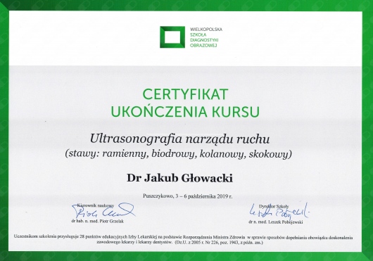 Jaki jest zakres porad oferowanych przez Jakub Głowacki?Jakub Głowacki to ortopeda. Na podstawie swojego doświadczenia i wykształcenia Jakub Głowacki oferuje usługi takie jak: konsultacja ortopedyczna, iniekcje dostawowe, USG narządu ruchu, blokady przeciwbólowe, endoproteza stawu biodrowego, artroskopia stawu kolanowego, artroskopowa rekonstrukcja więzadeł, Usługa RFA - termolezja w obrębie kręgosłupa, operacja zespołu cieśni nadgarstka, Terapia osoczem bogatym w czynniki wzrostu- PRP.