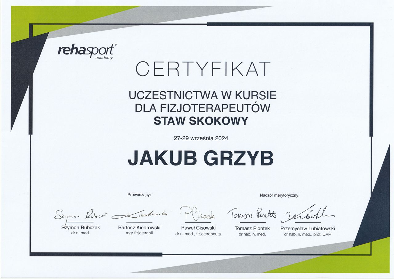 Jestem absolwentem Wydziału Rehabilitacji Akademii Wychowania Fizycznego w Warszawie, fizjoterapeutą oraz trenerem medycznym. W swojej pracy opieram się na aktualnej wiedzy naukowej, pomagając pacjentom w odzyskiwaniu sprawności, redukcji bólu oraz poprawie jakości życia.