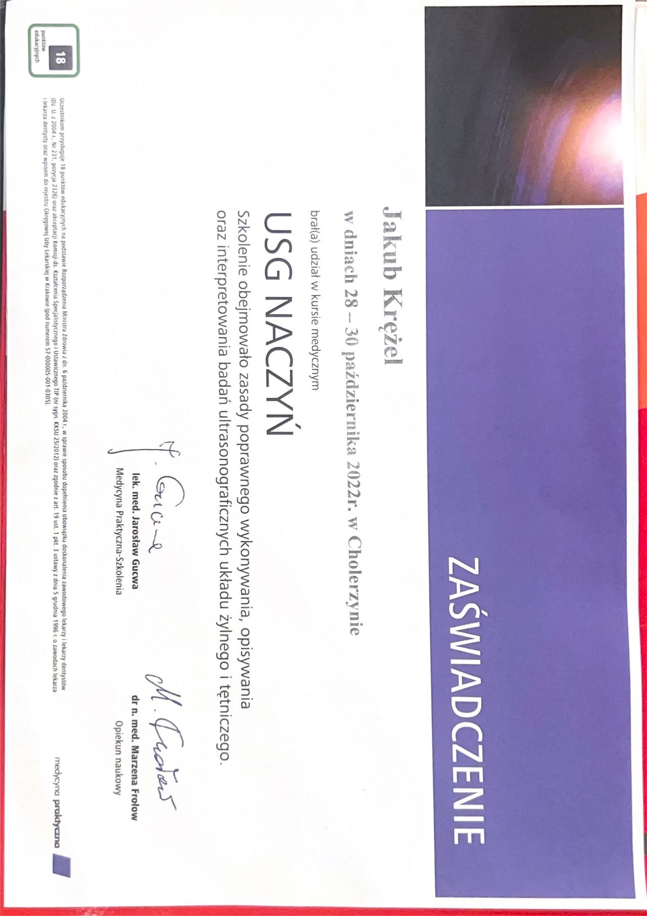 Jaki jest zakres porad oferowanych przez Jakub Krężel?Jakub Krężel to w trakcie specjalizacji (internista). Na podstawie swojego doświadczenia i wykształcenia Jakub Krężel oferuje usługi takie jak: konsultacja internistyczna, konsultacja internistyczna + badanie EKG, USG Doppler tętnic szyjnych, konsultacja + usg doppler aorty i tętnic biodrowych, Konsultacja medyczna z USG Doppler żył i tętnic (w celu kwalifikacji), Konsultacja + USG Doppler żył kończyn dolnych, USG Doppler aorty brzusznej oraz tętnic jamy brzusznej, USG Doppler tętnic kończyn dolnych, USG Doppler żył kończyn dolnych/górnych, konsultacja w języku angielskim.