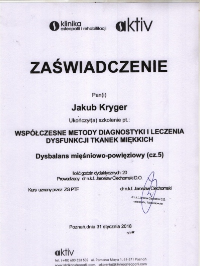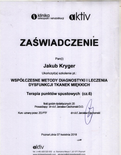 Jaki jest zakres porad oferowanych przez Jakub Kryger?Jakub Kryger to fizjoterapeuta. Na podstawie swojego doświadczenia i wykształcenia Jakub Kryger oferuje usługi takie jak: terapia manualna (kolejna wizyta), konsultacja fizjoterapeutyczna (pierwsza wizyta).