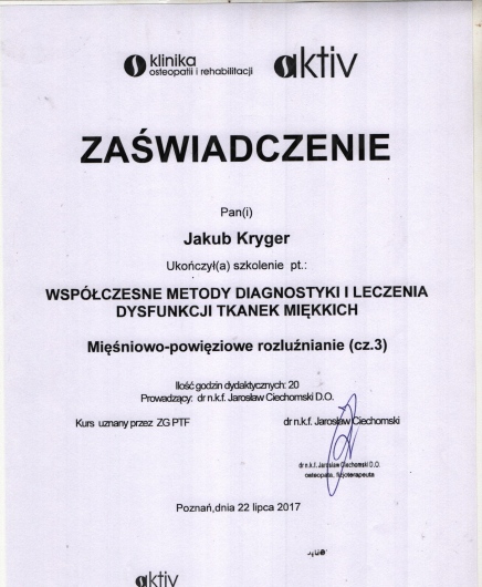 Moja pierwsza wizyta u fizjoterapeuty z bolącym kręgosłupem była udana.Pan Jakub przeanalizował dokładnie dokumenty ,które przyniosłam ,przeprowadził wywiad nt. mojego stanu zdrowia i poinformował jak będzie przebiegała terapia. Wiem ,że jestem w dobrych rękach. Jest osobą bardzo sympatyczną. I jestem zapisana na następne wizyty. Polecam .