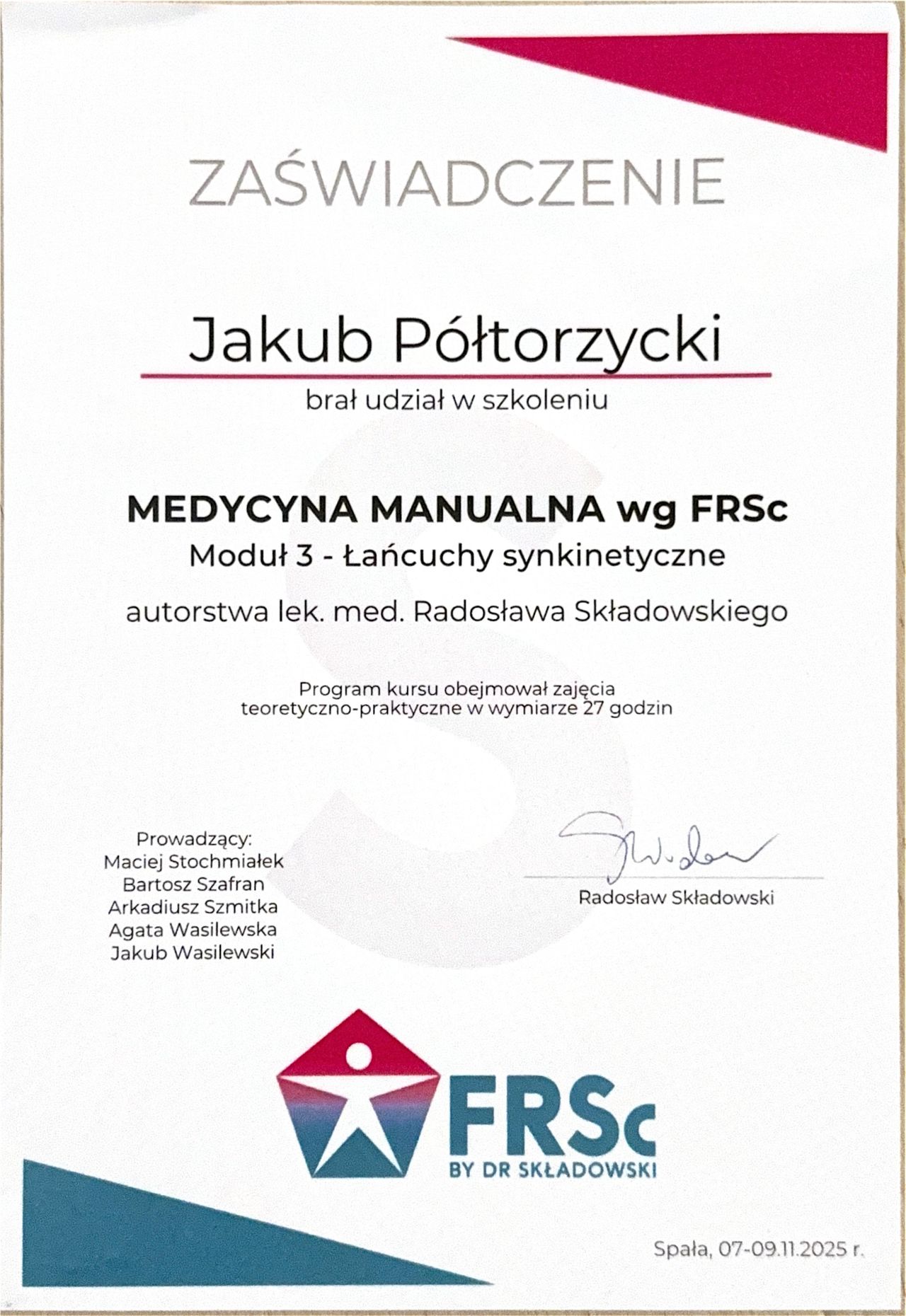 Miałem problem z dolną częścią pleców, który dokuczał mi od dłuższego czasu. Byłem u kilku specjalistów, ale przez prawie rok nie było poprawy, aż trafiłem do dr. Jakuba Półtorzyckiego. Już po kilku wizytach ból znacznie się poprawił, prawie zniknął. Teraz czuję się o wiele lepiej. Gorąco polecam.
