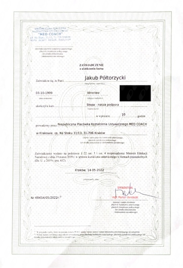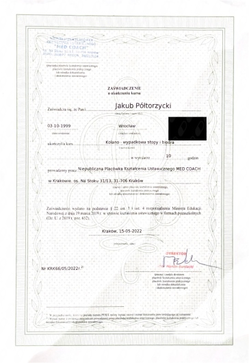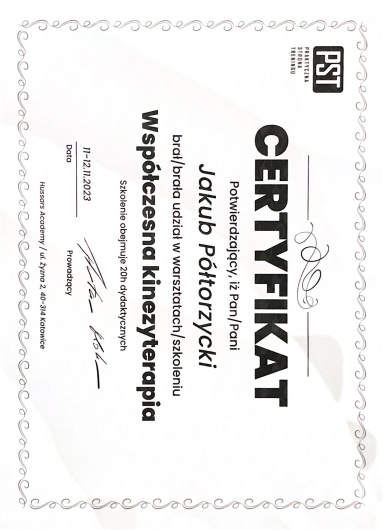 Dzięki treningom zalecanym przez Pana Jakuba co raz lepiej funkcjonuję na co dzień. Odczuwam mniej bólu i zwiększa mi się zakres ruchu. Kilka lat temu otrzymałam złożoną diagnozę, która zawierała m.in. rozległą PJM. W ostatnim badaniu obrazowym przepuklina jest znacznie mniejsza. Efekt ten w dużym stopniu łączę z treningami. Również terapia manualna prowadzona przez Pana Jakuba przynosi mi dużą ulgę w okresach, kiedy nie mogę pozwolić sobie na regularny trening oraz jako wsparcie równolegle do treningu. Pan Jakub przy każdej wizycie prowadzi rzetelny wywiad i badanie. Zawsze dba o bezpieczną i miłą atmosferę. Cieszę się, że do niego trafiłam.