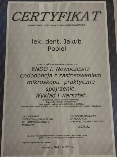 Jaki jest zakres porad oferowanych przez Jakub Popiel?Jakub Popiel to stomatolog. Na podstawie swojego doświadczenia i wykształcenia Jakub Popiel oferuje usługi takie jak: Konsultacja stomatologiczna, ekstrakcja ósemek, wszczepienie implantu, podniesienie zatoki szczękowej, Konsultacja specjalistyczna (implantologiczna, protetyczna).