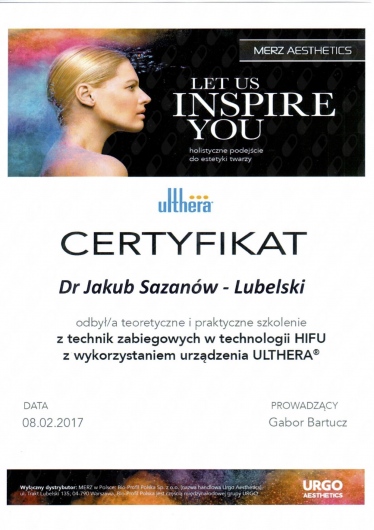 Nieustannie kształcę się pod okiem najlepszych szkoleniowców z kraju i całego świata. Jestem w prestiżowym gronie lekarzy, którzy ukończyli cykl szkoleń Allergan Medical Institute.
