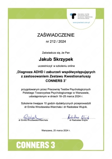 Zapraszam do kontaktu – przez portal Znany Lekarz lub stronę internetową - www.jakubskrzypek.pl