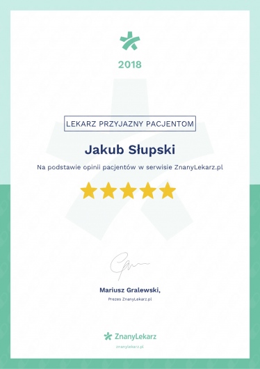 Jakub Słupski: co mówią pacjenci?73 osób dodało swoją opinię. Jakub Słupski ma średnią ocen 5 (na 5 gwiazdek).