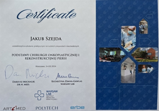 Witam serdecznie! Jestem lekarzem rezydentem Chirurgii Plastycznej, Rekonstrukcyjnej i Estetycznej. Obecnie z pasją pracuję na Oddziale Klinicznym Chirurgii Plastycznej, Rekonstrukcyjnej i Estetycznej. Moja praktyka obejmuje kompleksowe podejście do pacjentów, a największą satysfakcję czerpię z poprawy jakości życia osób, które doznały uszczerbku zdrowia z powodu nowotworu, urazu czy upływu lat.