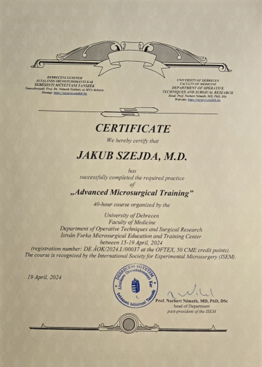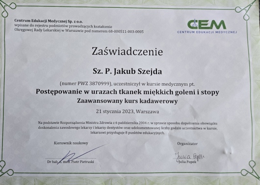 Chcąc podziękować zespołowi Dr.M. Fijałkowskiej szczególnie wyróżniając Dr. Jakubowi Szejda za jego profesjonalizm oraz podejście do pacjenta