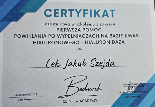 Z pełnym przekonaniem zarekomenduję doktora Jakuba Szejda jako profesjonalnego chirurga plastycznego. Byłam pod jego opieką i mogę szczerze powiedzieć, że doświadczenie to spełniło moje oczekiwania. Doktor wykazał się dużą wiedzą, ale także empatią i zrozumieniem moich potrzeb. Dokładnie wyjaśnił mi wszystkie etapy procesu oraz odpowiedział na każde pytanie, co pozwoliło mi poczuć się komfortowo i bezpiecznie. Jego podejście do pacjenta, życzliwość i zaangażowanie są godne podziwu.