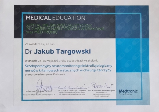 Od 2022 roku jestem aktywnym członkiem Europejskiego Stowarzyszenia Chirurgów Endokrynologicznych (ESES).
