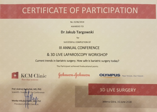 z wieloletnim doświadczeniem zawodowym. Specjalizuję się w chirurgii laparoskopowej