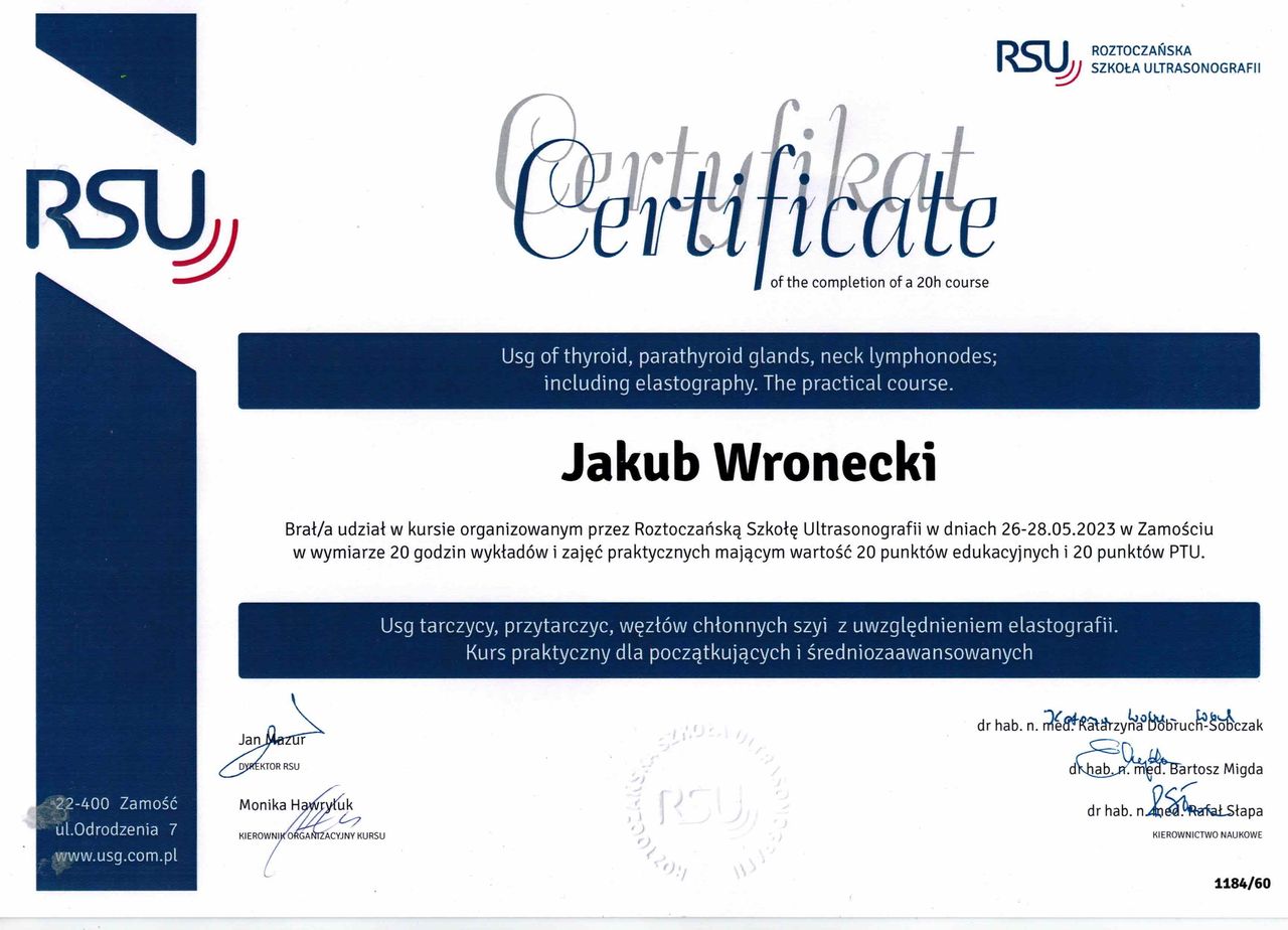 Jaki jest zakres porad oferowanych przez Jakub Wronecki?Jakub Wronecki to internista. Na podstawie swojego doświadczenia i wykształcenia Jakub Wronecki oferuje usługi takie jak: Konsultacja endokrynologiczna, Konsultacja internistyczna + USG tarczycy, konsultacja diabetologiczna, USG tarczycy, Konsultacja obesitologiczna (leczenie otyłości).