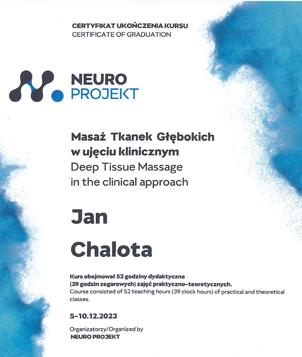 Jaki jest zakres porad oferowanych przez Jan Chalota?Jan Chalota to technik masażysta. Na podstawie swojego doświadczenia i wykształcenia Jan Chalota oferuje usługi takie jak: Drenaż Limfatyczny Manualny, masaż bańką chińską, masaż relaksacyjny, masaż relaksacyjny 60 minut, masaż sportowy, masaż tkanek głębokich, Masaż leczniczy.