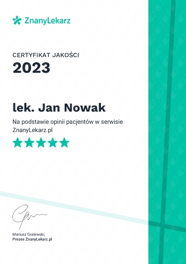 Informacja dla pacjentów będących już pod opieką doktora Jana Nowaka (wizyty kontrolne).