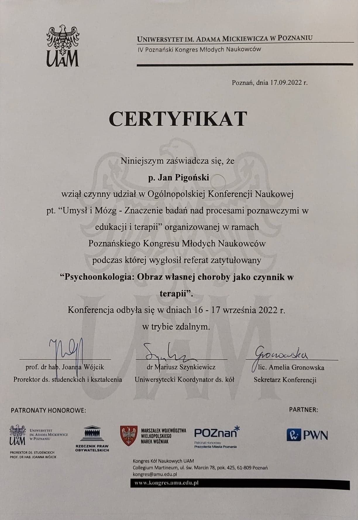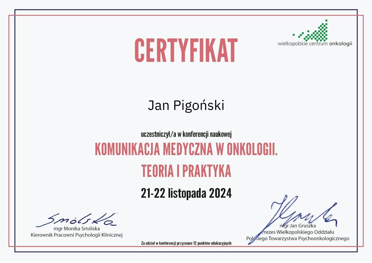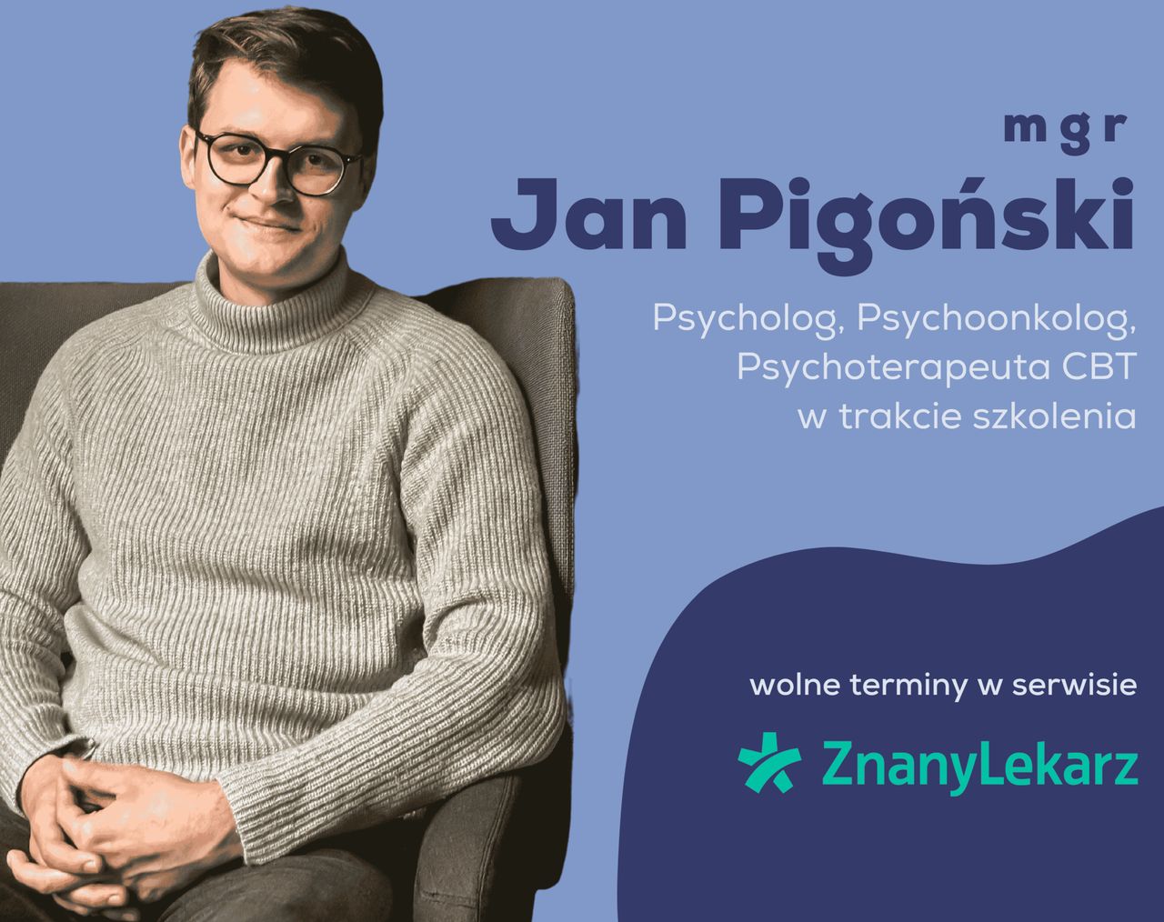 Wolne terminy do Jana Pigońskiego dostępne w serwisie ZnanyLekarz.pl na konsultacje psychologiczne i psychoonkologiczne. Zapraszamy do zapisów!