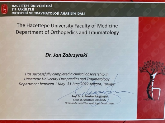 Doświadczenie zawodowe zdobywałem w Klinice Ortopedii Ogólnej, Onkologicznej i Traumatologii UM w Poznaniu, Oddziale Ortopedii Szpitala Citomed w Toruniu. W 2022 roku odbyłem staż kliniczny z zakresu chirurgii barku i medycyny sportowej, pod kierownictwem prof. Gazi Huri, Hacettepe University, Ankara, Turcja.
