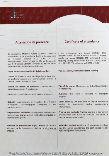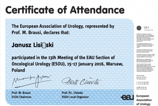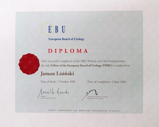 Posiadam tytuł Fellow of the European Board of Urology. (FEBU)