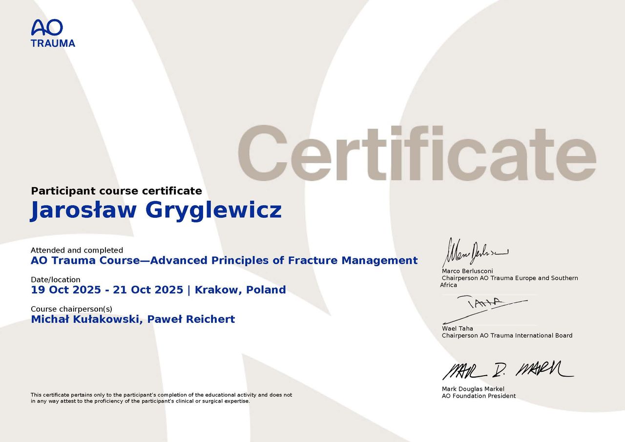 - AO Spine Fellowship Program, LIV Hospital Group (Istanbul) III 2023 – VI 2023